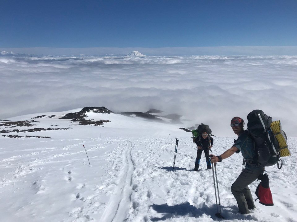 The route, Ingraham Glacier Direct, I found to be spectacular. It was still pretty early season for most routes on Rainier, but the tail end of the season for the Ingraham Direct route. This meant walking across beautiful but stable snow bridges, witnessing impressive yawning crevasses, and climbing a more direct route to the summit. We began the long walk around 1 AM and were standing on the top around 7 AM. Not record-breaking by any means, but after all, we were really there for the spectacular shits. Speaking of which, all three of us utilized our wag bags while on the summit. It was rather unnerving yet surprisingly comforting to feel warmth radiating from the ground as I squatted just a few inches from Rainier’s surface; Mount Rainier is an active volcano after all. There are many summit spots warm enough to melt any overlying snow, and some even generate steam. During my date with the wag bag, I distinctly recall making eye contact with a few others who were apparently there for the summit views? We made it back to Camp Muir uneventfully, busted out the shovel blades, and proceeded to sled most of the way back to Paradise.